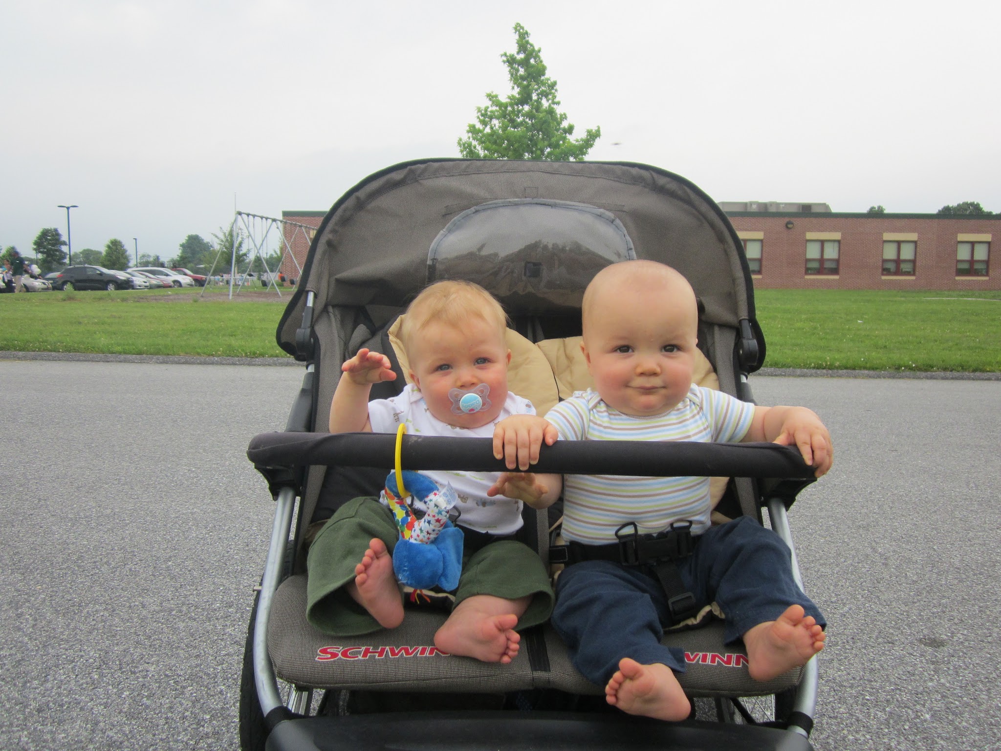 Sometimes ten month old Levi rests his little hand on his twin brother Isaiah’s pudgy thigh when they ride side-by-side in the jogging stroller. It looks like an adorably casual gesture of affection. Occasionally they even appear to be holding hands as they ride along taking in world around them.