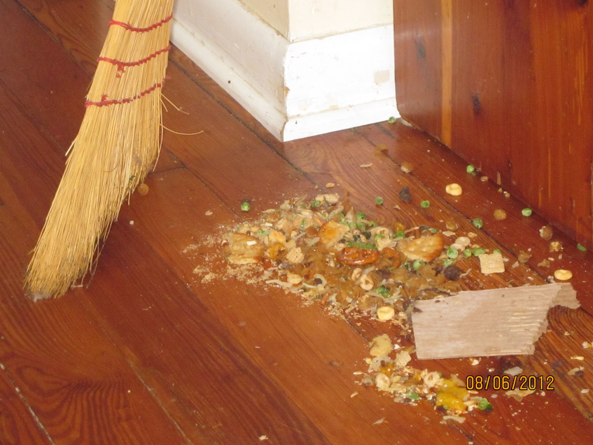 Three times a day I sweep up this pile. It’s bigger than even I can believe. My husband and I marvel at it and joke about renting our neighbor’s dog to walk-through and eat up the scraps each night. But until today I’ve not been able to see it. Today is when it hits me. The scales fall from my eyes and I smile in recognition and wonder how long God has been holding his breath, suppressing a giggle, waiting for me to get this cosmic joke.
