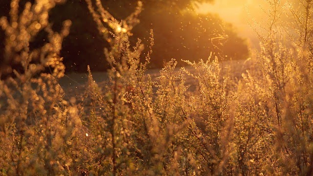 Fog shifts, blue spreads wide one day, then purple or even green the